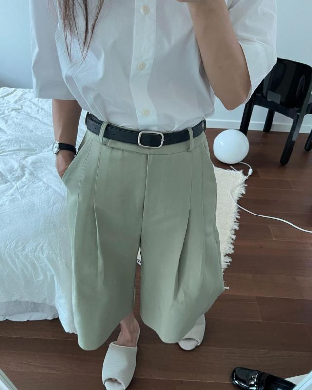 시원한 원단의 여름 5부 숏팬츠예요. 올 여름 숏팬츠는 5부 길이로 많이 보이네요?